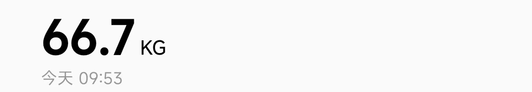 - 又一个开学阶段:每日两餐 + 偶尔零食 + 每日上课通勤 2-3 公里,一个月后体重 66.7->65(此阶段主要为维持)
